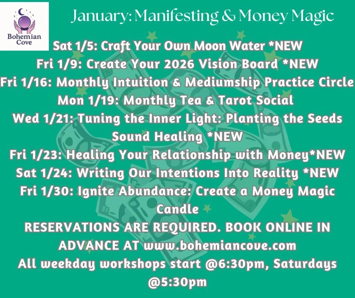 Bohemian Cove: Magic & Soul Center offers workshops on a variety of topics including astrology, tarot, meditation, energy healing, and more. We also have guest speakers and authors who come to share their knowledge and expertise.